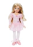 Fully bendable doll with high quality joints and a natural cute look. High quality blond nylon hair. Accessories: 1 sweet training outfit - body wrap jacket, skirt, ballet shoes and cuffs, ballet book and a ballet music CD with 5 ballet music pieces.